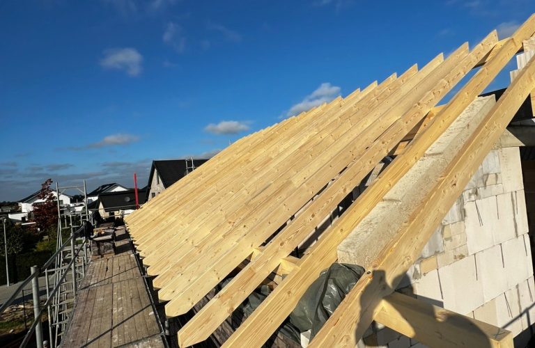 Ein stabiler und präzise gefertigter Dachstuhl ist die Grundlage jedes Hauses. Wir planen, fertigen und montieren Dachkonstruktionen nach Maß – zuverlässig, langlebig und perfekt abgestimmt auf Ihr Bauprojekt.
